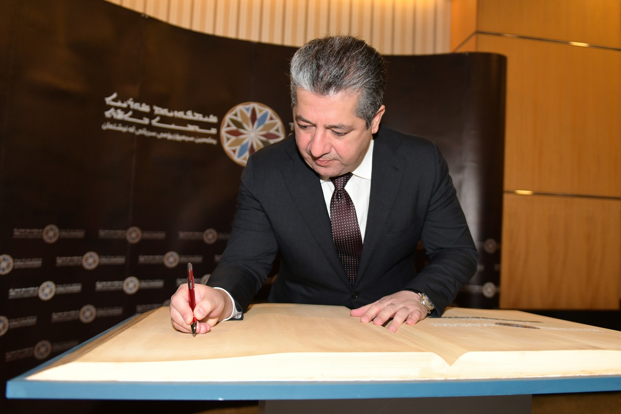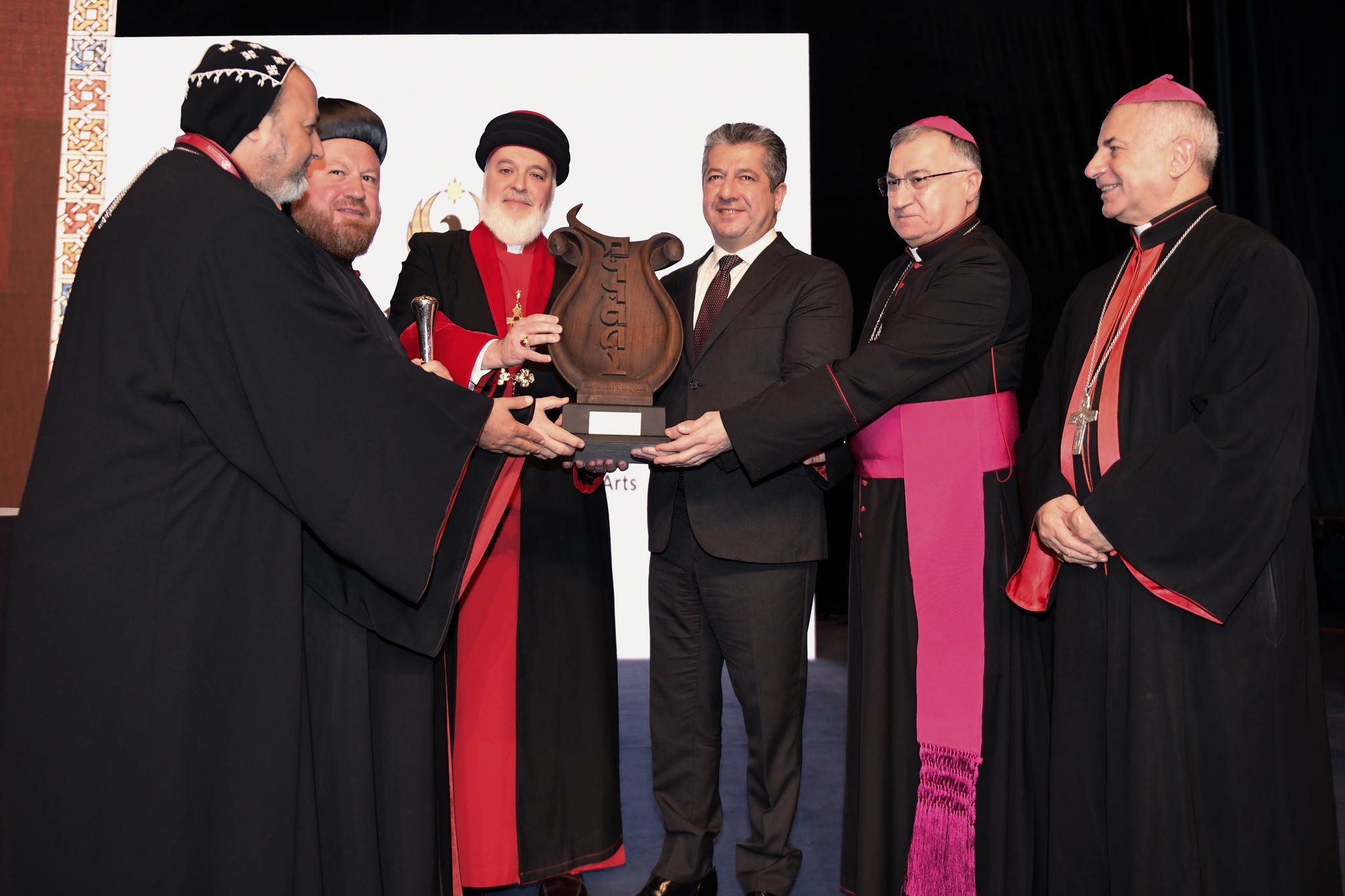 بعدها ألقى رئيس حكومة إقليم كوردستان السيد مسرور بارزاني كلمته، التي أكد فيها أن "كوردستان كانت على الدوام موطناً لمختلف القوميات والأديان، ونحن ملتزمون بحماية هذا التعايش وتعزيزه، الذي نعتز به"، متعهداً "بمواصلة الأهتمام باللغة والثقافة السريانية وجميع المكونات المختلفة في كوردستان، كما هو الحال دائماً".