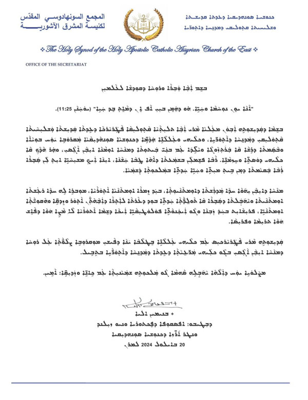 المجمع السنهاديقي لكنيسة المشرق الآشورية يقدم تعازيه لعائلة المغني الآشوري الأسطورة الراحل إيوان أغاسي