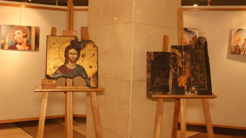 قدّم كندراشوف شرحًا مختصرًا عن محتوى المعرض من أيقونات وصور، مُشيرًا إلى المصير المشترك الذي حلّ بهذَيْن الديرَيْن. وقال إن التشابه في عمليّات التخريب والإرهاب التي تعرّضت لها معظم دول العالم في خلال الحرب تهدف إلى محو حضارة الإنسان وتاريخه ليتجرّد من هويّته الثقافيّة، وبالتالي التمكّن من التحكّم به وتسييره وفق استراتيجيّات ممنهجة.