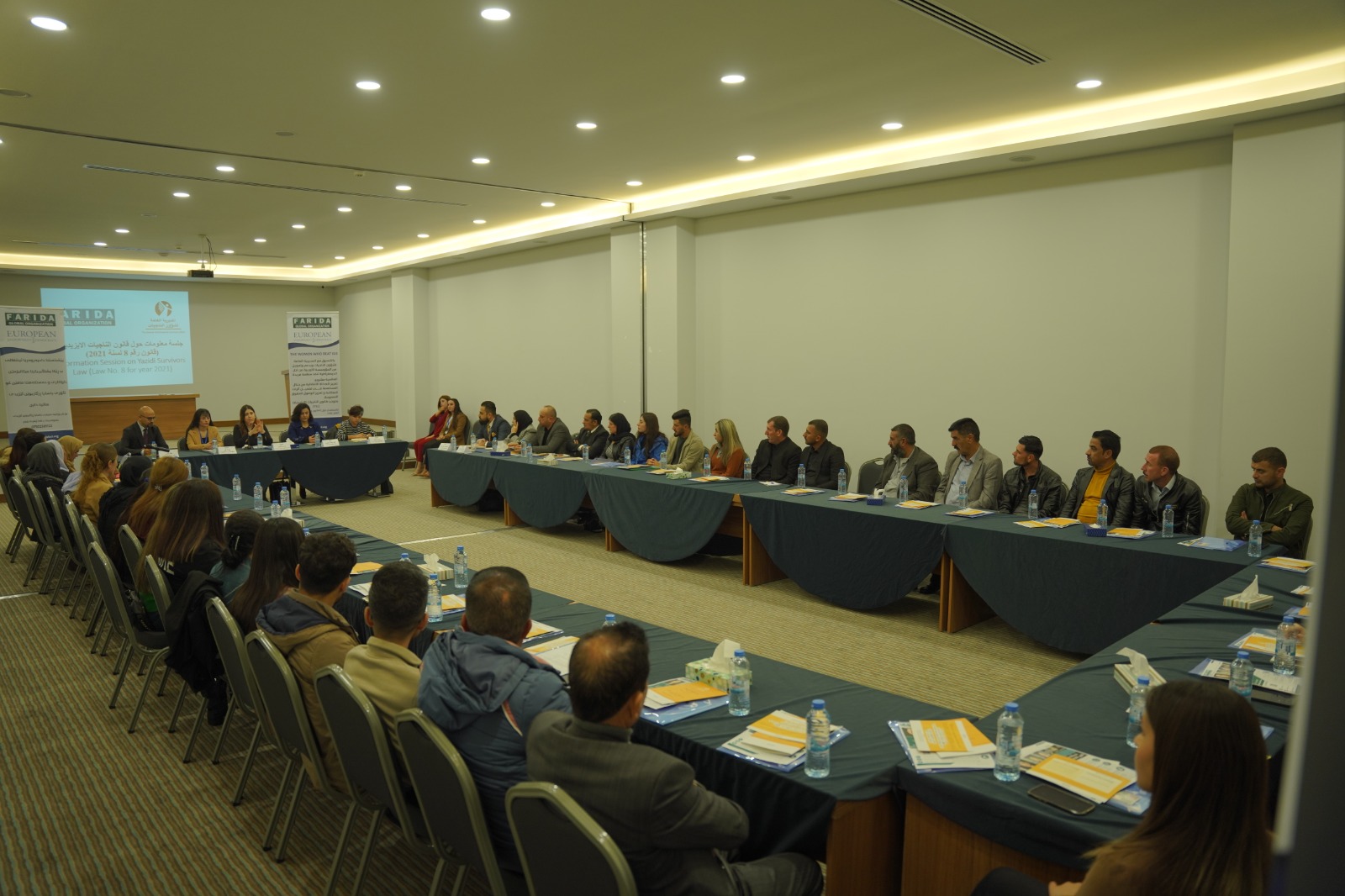 في محافظة دهوك وبالقرب من المكان الذي لا يزال فيه معظم الناجين الإيزيديين من أسر داعش وضحايا الإبادة الجماعية يعيشون في مخيمات النزوح، تعقد منظمة فريدة العالمية جلسات حوارية حول قانون الناجيات الأيزيديات (قانون رقم 8 من 2021). يفتقر العديد من الناجين المؤهلين للحصول على تعويضات ومزايا بموجب YSL إلى المعلومات والمعرفة والمهارات المتعلقة بـ YSL وتطبيقه لتلقي التعويض.