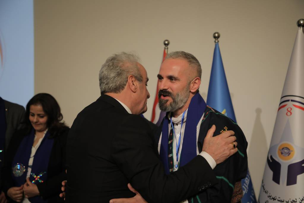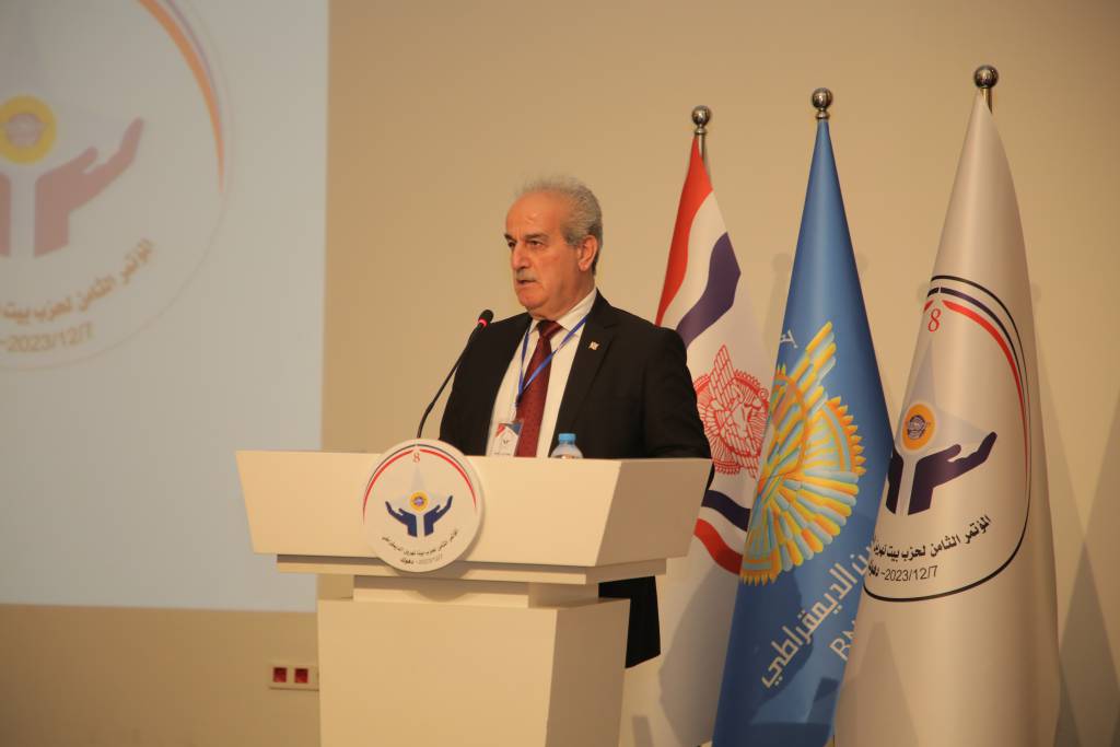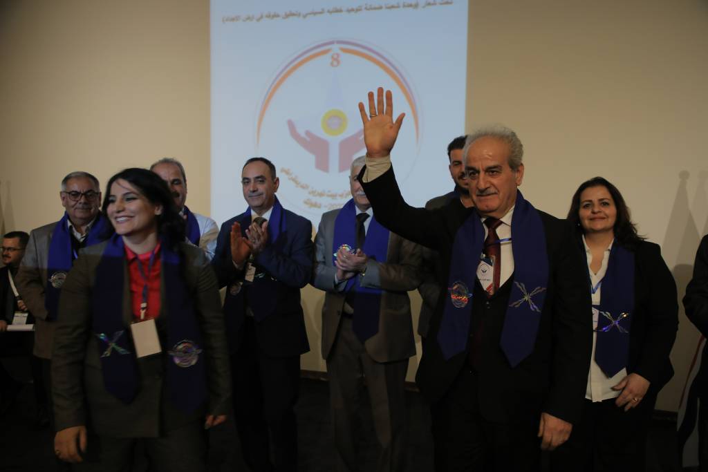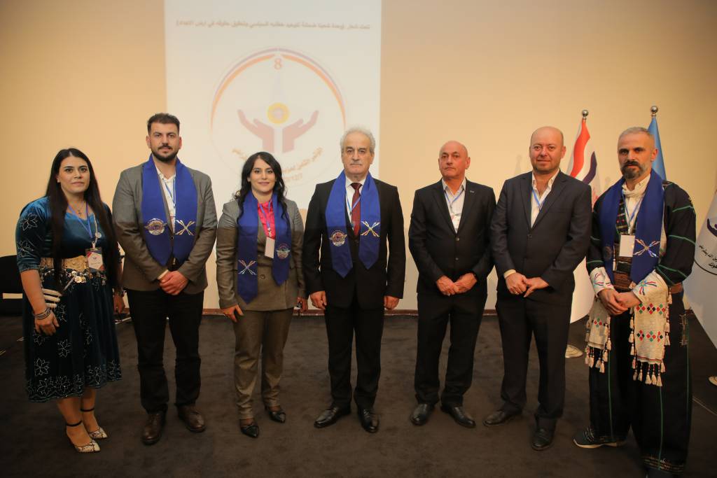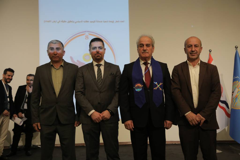 بعدها القى رئيس اللجنة التحضيرية للمؤتمر كلمة استعرض فيها اهمية انعقاد المؤتمر وفي هذا الظرف الحساس الذي يمر بها شعبنا والوطن والمنطقة واهمية انعقاد المؤتمر في هذه المرحلة الحساسة والاستعداد للمرحلة القادمة من نضال الحزب، ثم تم قراءة اسماء الشخصيات والاطراف السياسية والدينية التي ارسلت برقيات التهنئة ممزوجة باقتراحات قيمة لاغناء وانجاح للمؤتمر الثامن للحزب، منها برقية الرئيس مسعود بارزاني رئيس الحزب الديمقراطي الكردستاني، قداسة البطريرك مار أوا الثالث بطريرك كنيسة المشرق الاشورية، السيد مسرور بارزاني رئيس حكومة اقليم كردستان، مكتب علاقات الاتحاد الوطني الكردستاني، قسم علاقات ( PDK )السيد غفور مخموري رئيس الاتحاد القومي الديمقراطي الكردستاني، القنصل العام لدولة فلسطين السيد نظمي حزوري، المجلس القومي الكلداني، تجمع السريان المستقل، الاتحاد الاشوري العالمي، االاتحاد الديمقراطي الكلداني، المنظمة الاثورية الديمقراطية واتحاد بيث نهرين الوطني واحزاب وشخصيات قومية وكردستانية ووطنية اخرى سوف تنشر الاسماء والبرقيات في موقع الحزب والمواقع الاخرى.وفي نهاية الجلسة تم تكريم عدد من الكتاب والمثقفين والاكاديميين تقديرا لدورهم وجهودهم في تنمية وتقوية لغة وتراث وتاريخ شعبنا.