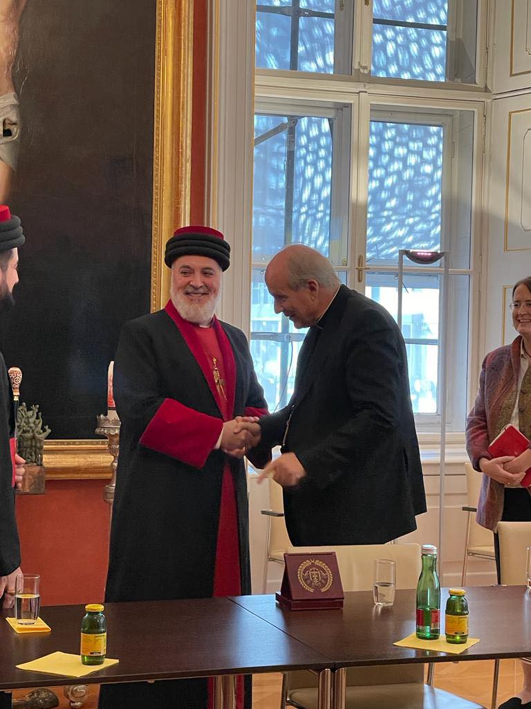 التقى قداسة ابينا البطريرك مار آوا الثالث، بطريرك كنيسة المشرق الآشوريّة في العالم، بنيافة الكاردينال كريستوف شونبورن، رئيس اساقفة فيينا للكنيسة الكاثوليكية، يوم الخميس الموافق ٢٠ تشرين الاول ٢٠٢٢، وذلك ضمن الزيارة البطريركية التي يقوم بها قداسته الى ابرشيّة غرب اوربا لكنيستنا المقدسة.
