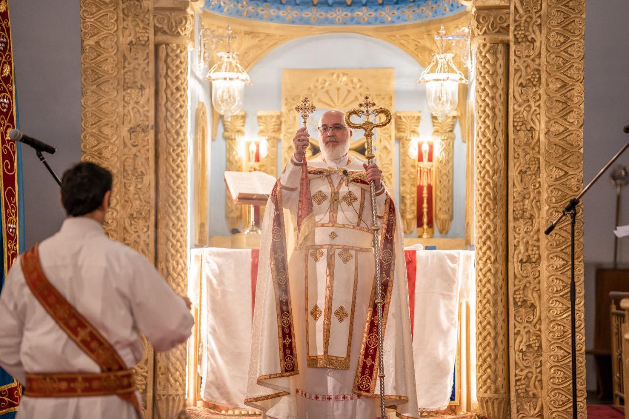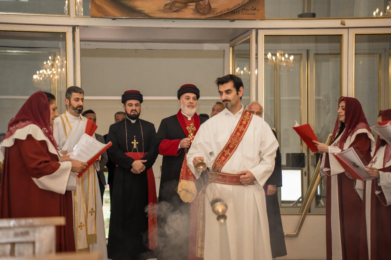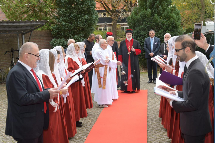 رافق قداسته نيافة مار أوراهم يوخانيس، أسقف غرب أوربا، والخورأسقف اسطيفانوس يلدا والأب شمعون شمعون، راعي كنيسة مار بنيامين شمعون هولندا.