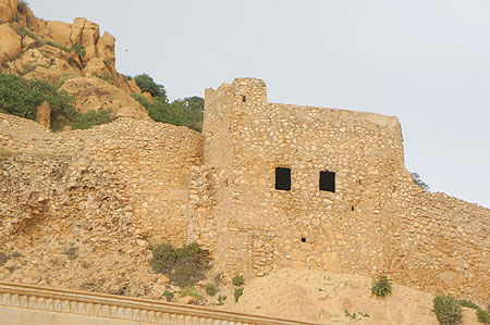 نخرج إلى فضاء الدير، نرصد الطريق المتعرج (الطبكي) بوضوح من السطح العالي، نتأمل البناء القديم، الأول المحفور في صخور الجبل والذي ما زال ماثلا هناك في القمة، حيث الصوامع التي كان يتعبد فيها الرهبان، ومنها صومعة مار متى، فالبناية تتكون من ثلاثة طوابق وتضم كنيستين والكثير من الغرف التي يقيم فيها بعض الزوار لعدة أيام، كما توجد هنا عدة صهاريج نحتت في بدء تأسيسه لخزن مياه الأمطار المنحدرة من الجبل. ولا يزال أربعة صهاريج قائمة، يبلغ سعة أكبرها 2420 مترا مكعبا. ولعل أجمل كهوف الدير هو كهف الناقوط الذي يعد أكبر الكهوف، وأكثرها سحرا وجمالا، ويقع غرب الدير على مسافة 200 متر. ويتكون من قسمين، الخارجي ومساحته 10م×15م، ورصف بالحجر المعروف بالبازي تتوسطه بركة ماء. والقسم الداخلي مساحته 6م×4م، حيث تتقطر خلاله المياه طوال السنة لتتجمع في حوض صغير وتنساب إلى القسم الخارجي حيث تصب في البركة، إذ يقضي هناك الزوار وقتا ممتعا في فصل الصيف. يتم حاليا تزويد الدير بالماء من عين في الجنينة بواسطة (ماطورات) كهربائية، إلى خزان في أعلى الدير ويتم توزيعه على عموم الأبنية.