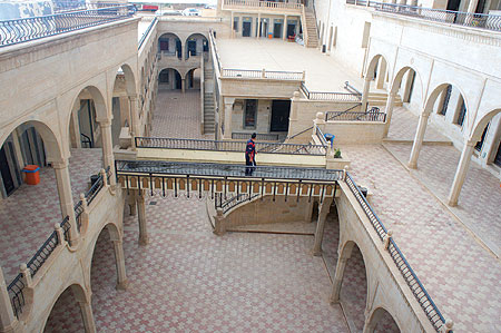 لسنا بحاجة لأن نطرق البوابة المفتوحة على مدار ساعات النهار والمساء، يأخذنا رواق يذكرنا انحناء أقواس سقوفه بأبنية القصر العباسي ببغداد او القصر المعشوق في سامراء وبعمارة العصر القوطي، بل أقدم من ذلك بكثير، بقصور نينوى التي تنتمي إليها منطقة الدير تاريخيا و حضاريا وجغرافيا، الأعمدة المرمرية المزخرفة بأشكال نباتية تحيط الزائر من الجانبين نحو باحة مفتوحة إلى السماء، نمر بباب عتيق يفضي إلى (المغارة الكبيرة)، وهي عبارة عن صهريج كبير وقديم لخزن المياه حيث كان الدير غالبا ما يتعرض لحصار القوات الغازية أو لحصار الطبيعة. لا أحد يسألنا من نحن ومن اين جئنا وإلى اين نذهب، أو ماذا نفعل هنا، أو أي شأن نحن موجودون من أجله، بل تقدم نحونا أحد الرهبان من المقيمين والمتطوعين لخدمة الدير، وبابتسامة تشي برقة روحه قادنا نحو غرفة الضيوف ليمضي بنا من خلال سرده عبر خرائط معرفية في تاريخ وجغرافيا المكان والزمان، إذ تختلط في سرده قصة بناء الدير الأسطورة والحقيقة، فلا يستطيع المتلقي التمييز بينهما كونه ينتبه جيدا إلى عدم إهمال التواريخ، ولأنه أيضا مؤمن بأن ما يرويه هو عين الحقيقة وإن كانت الأسطورة تنسج فعل تأثيرها في هذه القصة.