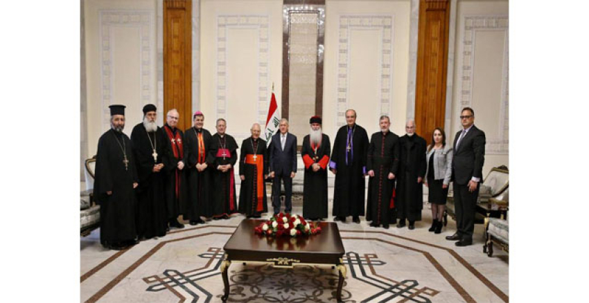 استقبل فخامة رئيس الجمهورية الدكتور عبد اللطيف جمال رشيد، يوم الخميس 2 شباط 2023 في قصر بغداد، غبطة بطريرك الكلدان في العراق والعالم الكاردينال لويس رفائيل ساكو ورؤساء كنائس بغداد وقد اعتذر البعض بسبب السفر.