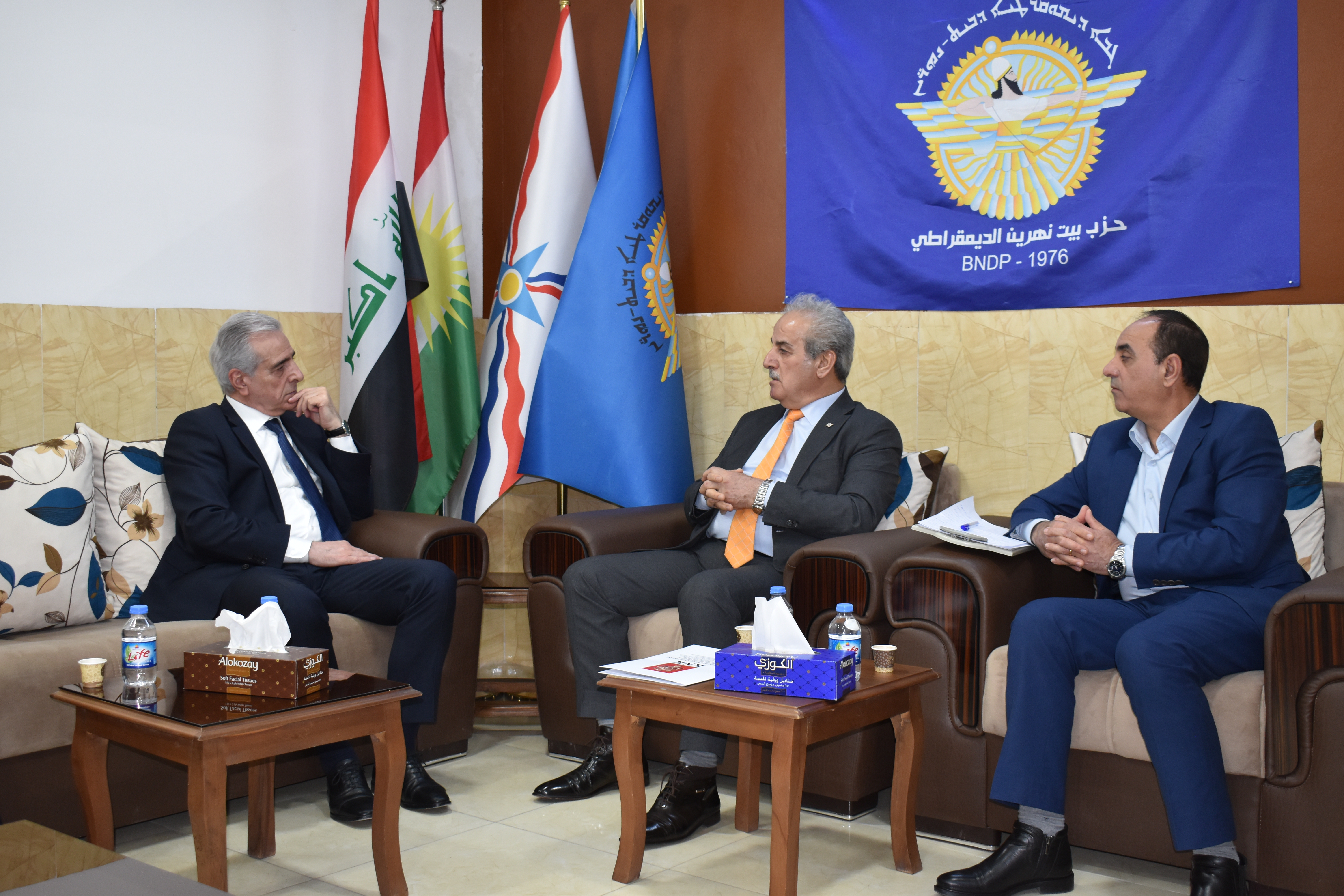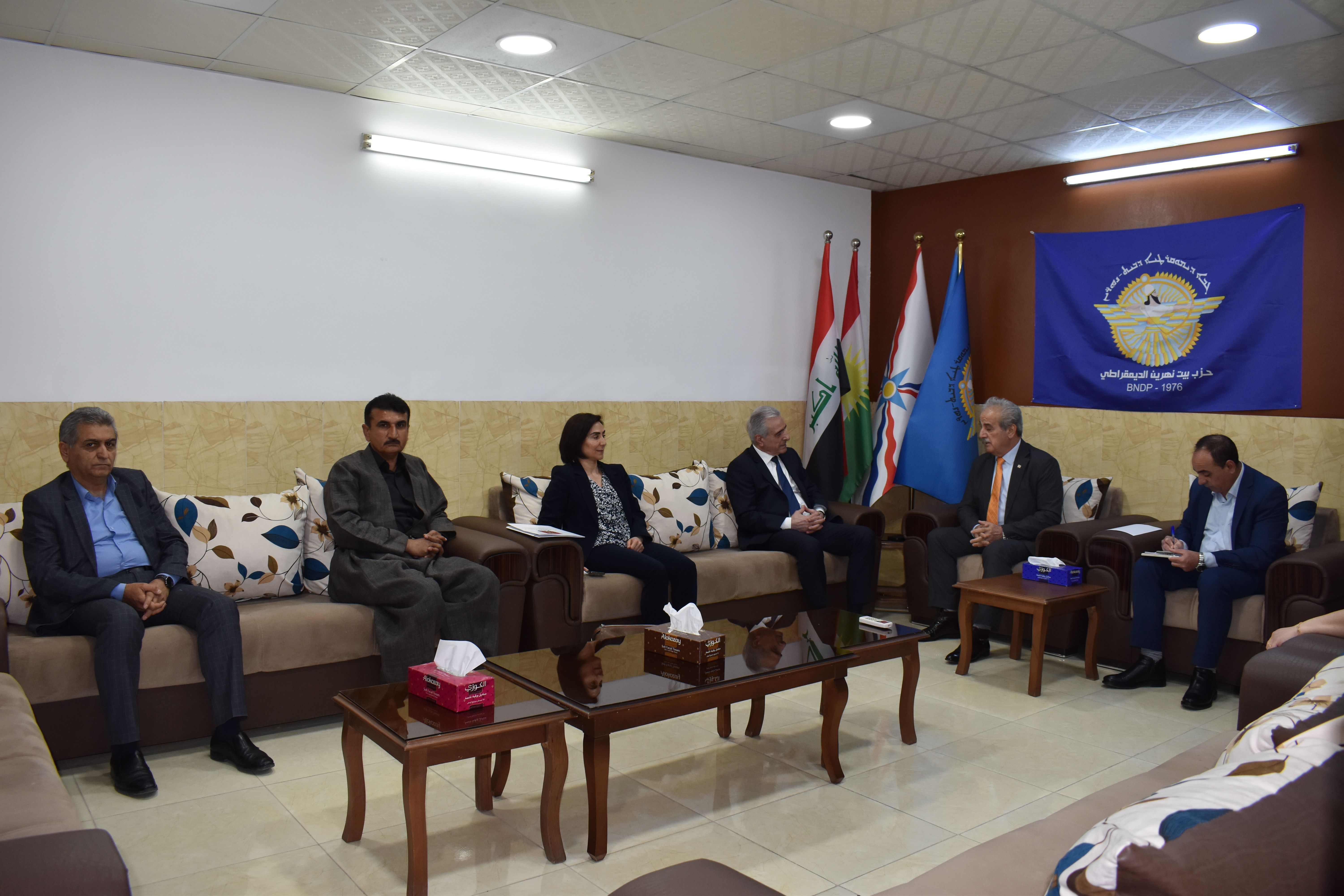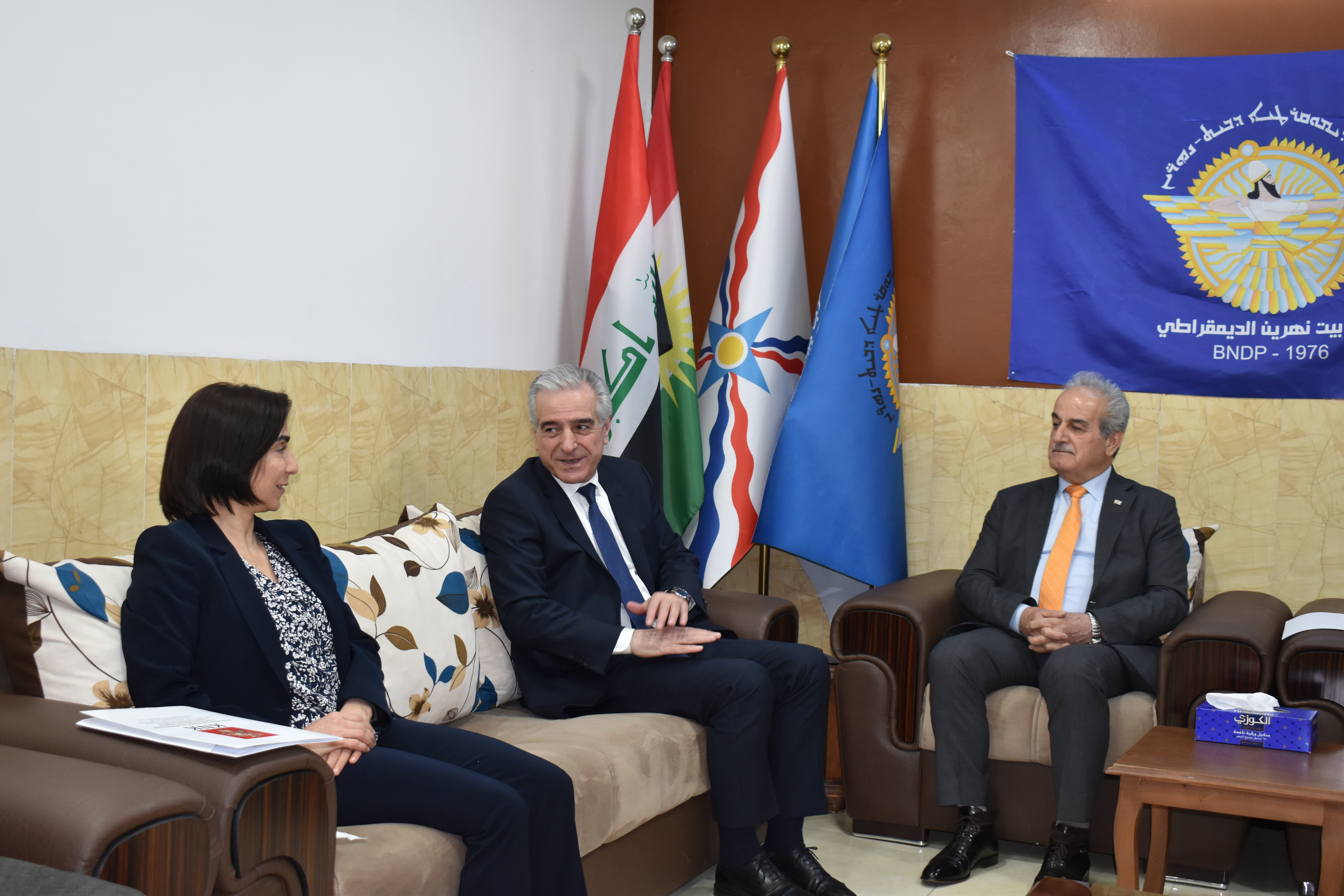 يوم الاربعاء المصادف 8/3/2023، استقبل حزب بيت نهرين الديمقراطي برئاسة روميو هكاري السكرتير العام للحزب وجرجيس يونان عضو المكتب السياسي ومسؤول فرع اربيل للحزب وبلسم جورج عضو فرع اربيل مسؤولة المكتب النسوي للحزب، وفداً من المؤتمر القومي الكوردستاني برئاسة السيد احمد قرموس الرئيس المشترك للمؤتمر القومي وعضوية السادة زينب مصطفى وشكرالله حمدامين و ريباز مصطفى اعضاء المؤتمر وخلال اللقاء تم عرض ومناقشة المستجدات والاوضاء السياسية في الإقليم، و عرض فعاليات ونشاطات المؤتمر والاستعداد لإقامة كونفرانس وفعاليات لمناسبة الذكرى المئوية لاتفاقية لوزان، وكيفية مشاركة شعبنا الأشوري الكلداني السرياني في هذه الفعاليات، والتأكيد على حقوق ومطالب شعبنا بكونه مكوناً أصيلا في مكونات الإقليم والمنطقة جنباً إلى جنب مع المكونات الأخري وخصوصاً الأخوة الكورد.