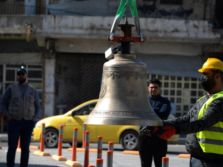 دقت ثلاثة أجراس قادمة من النورماندي الفرنسية في مدينة الموصل في شمال العراق، بحضور المديرة العامة لمنظمة الأمم المتحدة للتربية والعلم والثقافة (يونسكو) أودري أزولاي، فيما تتواصل إعادة إعمار تراث هذه المدينة بعد دمارها إثر سيطرة جهاديي تنظيم الدولة الإسلامية.
